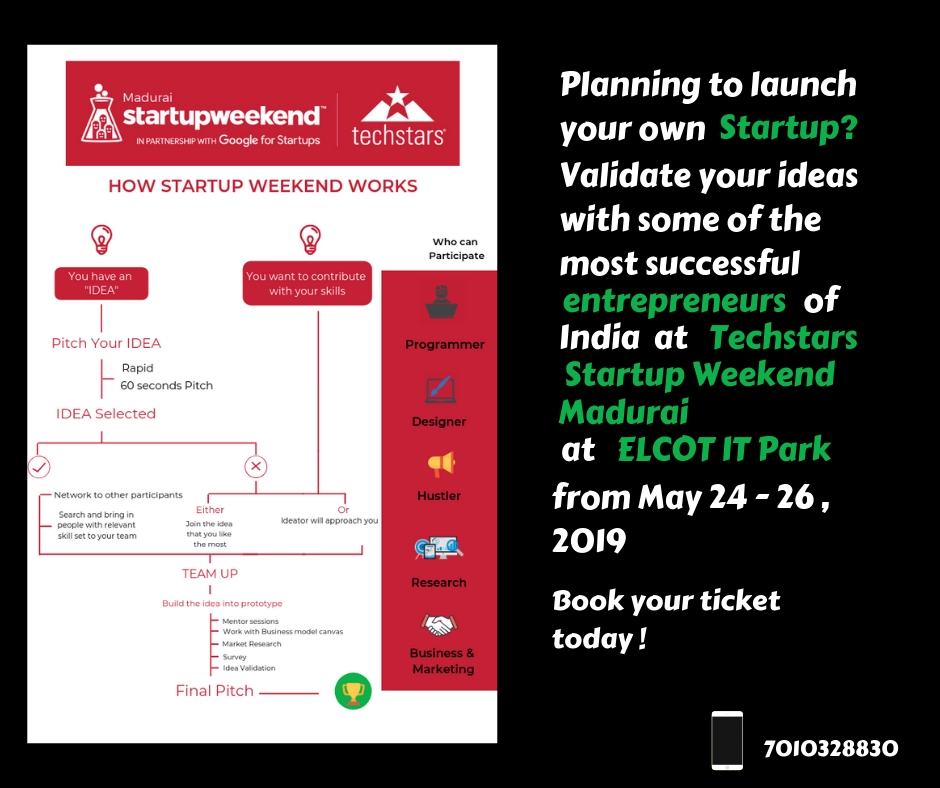 #ForWomenByWomanCoworkingSpaceTechstars Startup Weekend Madurai. Our event is open for registration and we're looking to spread the word. Can you help us bring attention to Startup Weekend Madurai by sharing the details with your network?