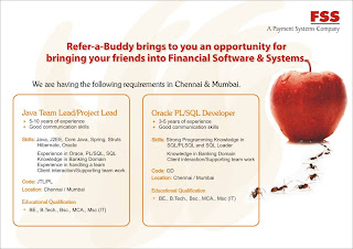 In case you have any clarifications on the requirements / Referral policy, please feel free to contact our HR Team (Raja.Raguram / Parvathy Krithiga) at Chennai and (Monica Arora / Tina Bhatnagar) at Mumbai.