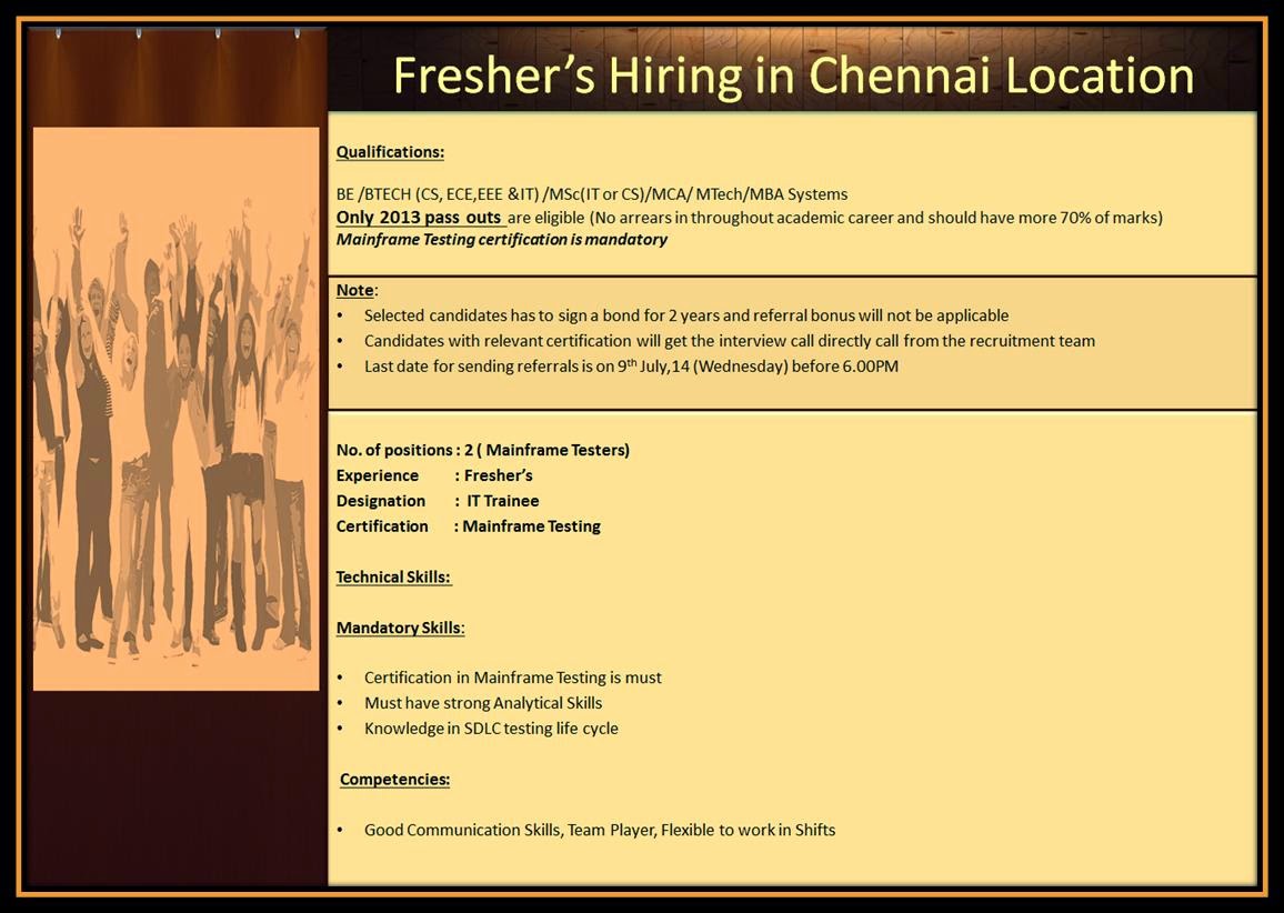 Subject: Broadcast:: Freshers' hiring in Chennai location